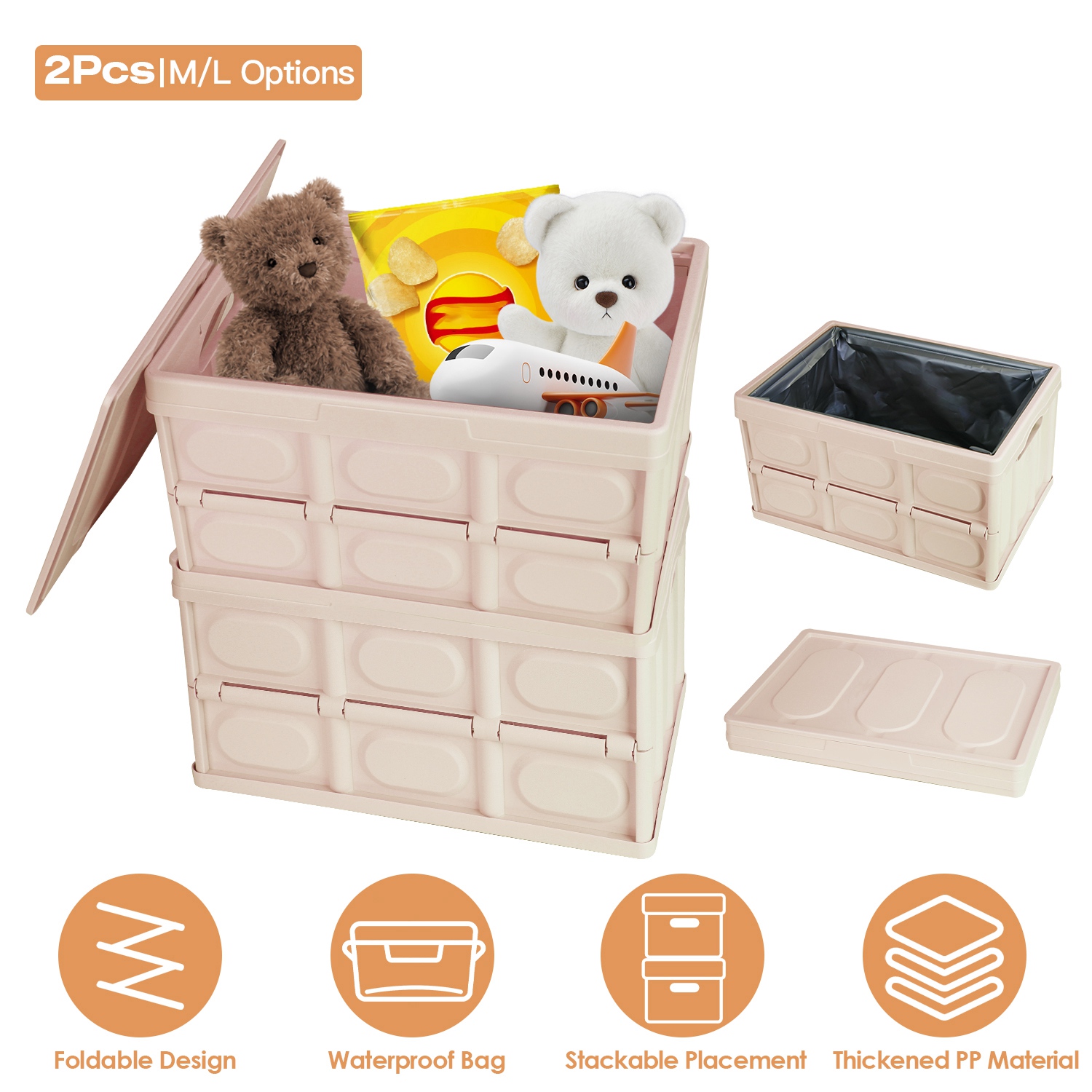 Are you tired of cluttered spaces and struggling to find a reliable storage solution? Our foldable storage bins are made of thickened sturdy PP material has 3 color options and 2 size options, meeting your various preference and storage needs. The space-saving foldable and stackable design makes these plastic utility containers an ideal choice for daily family storage, like bathroom organizer, toy storage, car organizer, bedroom storage, snack organizer, book bins. Additionally, the removable waterproof bag makes our collapsible storage boxes perfect for outdoor activities, serve as temporary fishing box or cooler box for picnic.