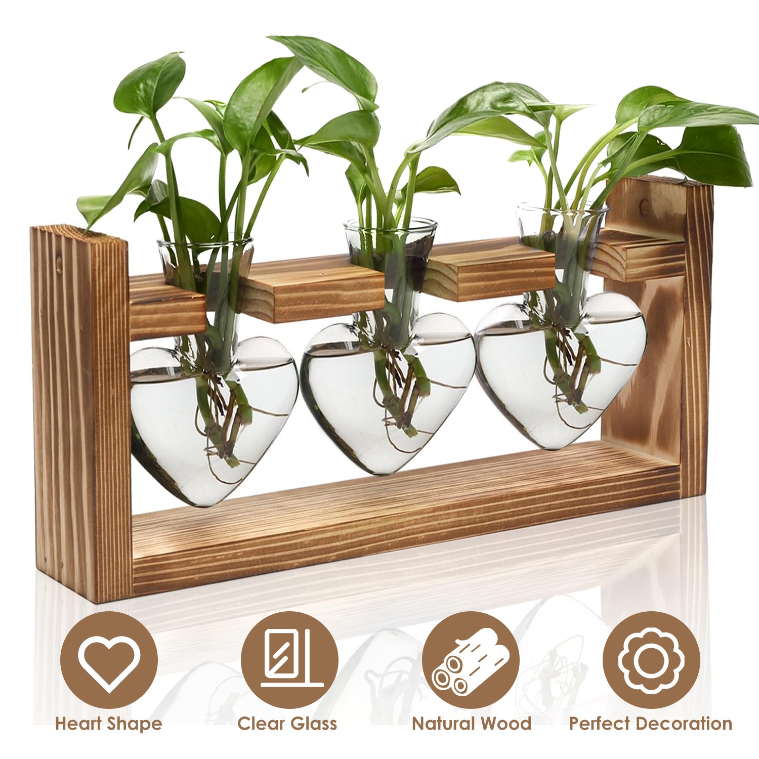 Perfect addition on windowsills, office desks, living room tables, bedrooms, kitchens, cafe shops, and more. Our plant propagation station with unique heart-shaped design transforms any mundane space into a serene environment filled with life, while enjoying the pleasure of nurturing your favorite plants. Clear, transparent, and heat-resistant glass ensures longevity, while natural wooden stand is solidly constructed and resistant to fading over time. An ideal gift for the plant lovers in your life in Valentine s Day, Mother s Day, Father s Day, Thanksgiving, Christmas, birthdays, or anniversaries.