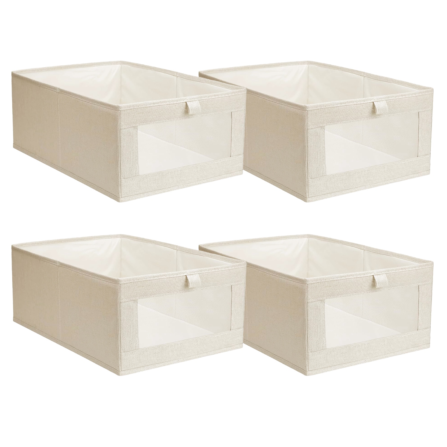 Home > 4Pcs Foldable Linen Clothing Storage Bin with Visible Clear Window Convenient Handle Multipurpose Collapsible Storage Basket Closet Fabric Container F